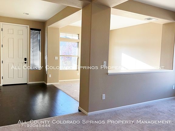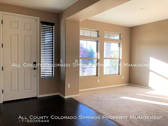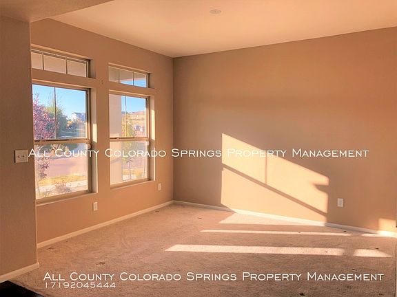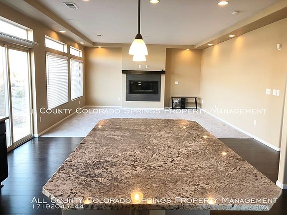 SCHEDULE A SHOWING ONLINE AT: showmojo.com/lh/75c11cd0b3 Remarkable- this home is an absolute stunner from the moment you step inside. You are graced by 10 foot ceilings, accompanied by large windows throughout the property, providing a flood of natural light. Walk right in to a formal siting area and formal dining room, perfect for entertaining guests. This corner lot is packed with features, including a kitchen perfect for the chef of the house! Stainless steel appliances, gas stove, large island, and double oven, with an enjoyable outdoor view right from your stove top. Open flow concept to the living room, which is loaded with a remote control built in gas fireplace, and even a whole house intercom system. Simply download the needed app and play your tunes throughout the house! This room is also surround sound ready! Nestled away in the Banning Lewis Ranch community, this location is everything you need and is within the zone for the renowned Banning Lewis Ranch magnet school and high school. And not to forget, you are graced with sweeping views of Pikes Peak, NORAD, and the entire west side from the upstairs bedroom and loft.HOA dues included in your rent, which provides club house access, gym, Rec center, community water park, and even includes internet services for your property. ADT System in place and ready for activation. Truly a gem! Call All County Colorado Springs today and make this beautiful house, HOME!