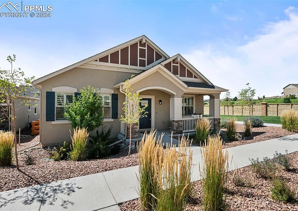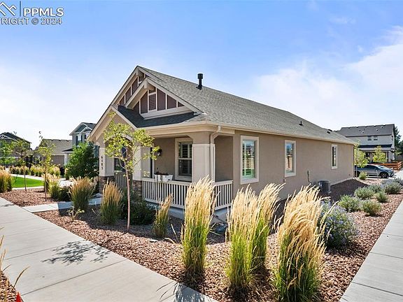 Beautiful and low maintenance home that is like new in a wonderful community on a cul-de-sac! Open space on three sides provides privacy and relaxing times! View of Pikes Peak from the guest room! Welcoming entry and porch bring you into this paradise! Plantation shutters through the entire home! Wide plank luxury vinyl floors run through the main living areas for continuity. The family room has space for a large couch and baby grand piano if needed! Cozy fireplace for winter nights! The family room opens to the kitchen with 42" cabinets, under lighting, big island , upgraded appliances to include convection and standard heat in the oven and granite counters. Coffee/wine bar next to the dining area for easy access. A large sliding door leads to the covered patio! Spacious main level master with walk in closet and on suite three quarter bath! Two more bedrooms on the main level and views of Pikes Peak! Main level laundry room for easy access! Attached two car garage! All this close to shopping, schools and all that the Springs offers! You are going to love living here!