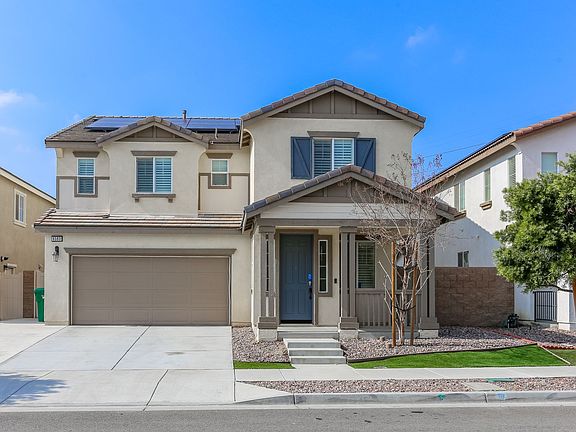 Beautiful 4 bedroom, 3.25 bathroom, 2 story home with mountain views and solar panels in the highly desired community of Brio and Symphony at the Trails in Eastvale! Enjoy a charming front porch entry to high ceilings, laminate wood flooring, a spacious living room, family room, and open kitchen. The kitchen offers a large center island, granite countertops, elegant wood cabinetry and sliding doors to the outdoor patio. The primary bedroom features ceilings fans, plush carpeting, a walk-in closet, a private balcony, dual sinks in the primary bathroom, a soaking tub, and walk-in shower. Additional property highlights include the outdoor fire pit, inside laundry room, and 2 car garage. Just minutes to Victoria Gardens outdoor shopping plaza, the Ontario Airport, and convenient to major freeways!