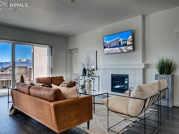 Enjoy carefree living in this magnificent 3,574 sq. ft. Toll Brothers Vineyard Modern ranch house, boasting 4 bedrooms, 3 bathrooms, and an oversized 3 car garage. The Great Room, with its gas fireplace and natural light pouring through the large windows, presents amazing views of Pikes Peak & The Front Range. The gourmet kitchen is equipped with quartz counter tops, a pyramid stainless-steel hood vent, gas range, dishwasher, pantry, solid wood cabinets, and a large island with additional seating and storage. The dining area opens to the large patio, with Pikes Peak views, and a gas line for your BBQ grill. The main level features a front bedroom, and the Primary Suite, has a 5-piece bathroom and a walk-in closet. The main level also includes a spacious laundry room, large office, and 3/4 bathroom. The W/O lower patio offers easy access to the walking trail behind. The fully fenced backyard is perfect for your pets. The finished basement is an entertainer's dream, boasting 2 large bedrooms, a full bathroom with the vanity separated from the tub/shower/commode, a huge storage/utility room, tankless water heater, 96% energy efficient furnace. Conveniently located near schools, shopping, and Wolf Lake, in the highly desirable Wolf Ranch Community. This home is the epitome of M/L EZ living. The community also offers a recreation center, pool,7+ miles of trails, 22 miles of planned trails, and more amenities for you to enjoy.