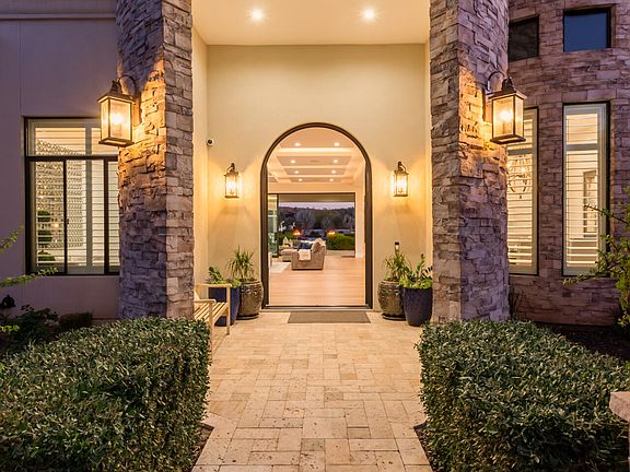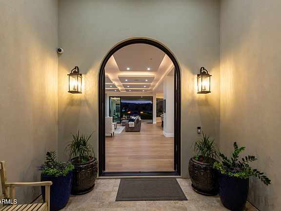 Stepping into the backyard is like entering a private oasis. An outdoor paradise awaits, featuring a built-in barbecue, an inviting outdoor fireplace, and luxurious travertine floors. With unmatched views and ample space, this backyard is the perfect setting for weddings, social events, or simply relaxing in the Arizona sun. The sparkling pool takes center stage, providing a refreshing respite on warm days. Surrounded by natural landscaping, this outdoor sanctuary offers the perfect backdrop to savor breathtaking Arizona sunsets.