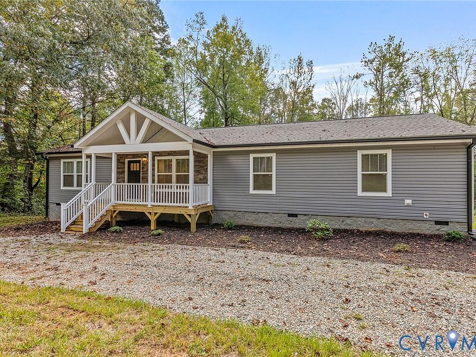 Discover the perfect blend of modern luxury and country charm right here in this brand new home! Nestled on nearly three acres of beautifully cleared and wooded land, this brand-new ranch-style home was designed with both comfort and sophistication in mind. Inside, 1,800 square feet of light-filled living space welcomes you with an open-concept layout, where a spacious living room flows effortlessly into a chef’s kitchen complete with gleaming granite countertops, high-end stainless steel appliances, a generous island, breakfast bar, and walk-in pantry. Retreat to the elegant primary suite featuring a spa-inspired bath with dual vanities, a walk-in shower, and a large walk-in closet, while two additional bedrooms and a versatile office or study offer flexibility for family, guests, or work. Every detail, from the rich vinyl plank flooring to the plush carpets, has been thoughtfully chosen to elevate your lifestyle. Step outside to a private deck and take in the tranquility of your expansive yard—perfect for entertaining, gardening, or simply soaking in the peace of your surroundings. With no HOA restrictions and easy access to Powhatan conveniences, this property offers a rare opportunity to enjoy refined living in your own private retreat.