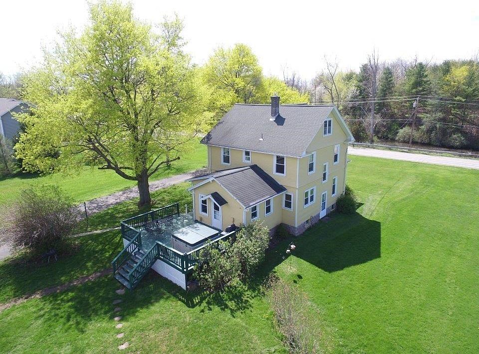 Charming colonial with natural wood and hardwoods, with the convenience of first floor laundry! Four bedrooms with deep closets, an enclosed porch and first floor office give you lots of space inside; just under three acres with a 3 level barn, heated workshop with cable, and a large deck give you lots of space outside! Home has 27 new windows, new tear off roof in 2002, gas fireplace in living room, brick patio, new metal barn roof in 2013, hot tub and so much more! Huge attic would make a great space finished or enjoy it just like it is! The barn currently stores collector cars below, has a huge movie screen and a loft. The workshop has a bar, cable access, and a wood stove so it can be used all season long! It makes a great place to tinker, craft, do mechanics or refinish antiques!