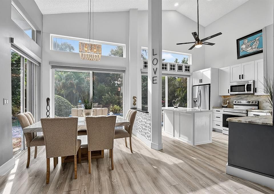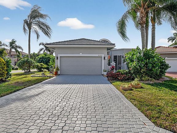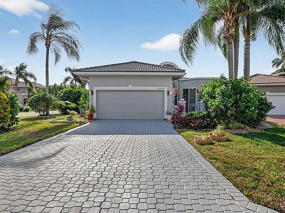 Live the life at Newport Bay Club with no buy-in fees. NBC has 225 homes, 24 hour manned-gate, gorgeous, updated clubhouse with fitness center, heated/chilled resort-style pool, pro-shop, 7 tennis courts, 4 pickle ball courts, basketball court, and play area. On Jog Rd, near Morikami gardens, shopping, great schools and Starbucks! This home is an oasis...sitting on a private corner lot. Host a pool party and impress friends with your remodeled kitchen with white cabinets, ss appliances, granite counter tops and island. The primary BR suite feels like a spa with soaking tub, double vanities, and custom closet. Natural light fills the space, especially in the common areas with the high ceilings. Enjoy updated flooring throughout and impact sliders leading to the pool. Move-in ready!
