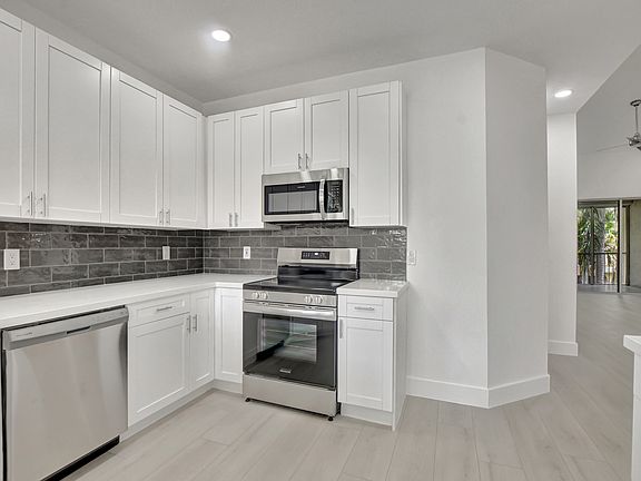 This exquisite top floor coach home with vaulted ceilings is centrally located in the Boca Del Mar area. It offers 3 bedrooms with a den with 2 bathrooms. A bright corner top floor unit. Perfect location to shopping and so many great restaurants. Security is one of the best features. Beautiful front gated entrance with grounds that are kept immaculate. A complete floor to ceiling renovation. EVERYTHING IS BRAND NEW INCLUDING ALL APPLIANCES, PLUMBING, SINKS, FLOORS, TILE, BASEBOARDS, PAINT, SHOWERS AND TUB, FIXTURES, ETC. A community pool and spa is within walking distance. Single car attached garage is perfect for parking or storage. *Everything completely redone *Master Closet Shelving *Attached Single Care Garage *High Vaulted Ceilings *Patio Hurricane Shutters *Corner bright unit Renter is responsible for water, electric and cable. Last months rent is due at signing. A 12 mo minimum lease is required. Applicant must be approved by the association.