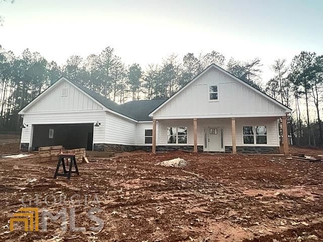 No Subdivision! No HOA! .69 Acre Wooded Lot! New home under construction with a completion date of less than 30 days from contract! One Level- Stepless Ranch Home situated on a private .69 acre flat and private lot! Hardi plank exterior with Board and Batten accents in Front Gables and a Rock Water Table! Large and Private Covered Back Porch! Cedar Front Porch Post! Three bedrooms and Two full baths! Open Floor Plan! Kitchen features SS appliance package, Tile Backsplash, an island and a breakfast room! Separate Formal dining or the perfect spot for your home office! Master Suite with Trey Ceiling features double vanities, separate tile shower, soaking tub, and oversized master closet! Large laundry room with my favorite feature -access to master closet! Open Great Room with Rock Fireplace! Hardwood floors in main areas, Tile flooring in the baths and laundry, carpet in the three bedrooms! Two Car Garage with Garage door opener! Granite Countertops throughout!