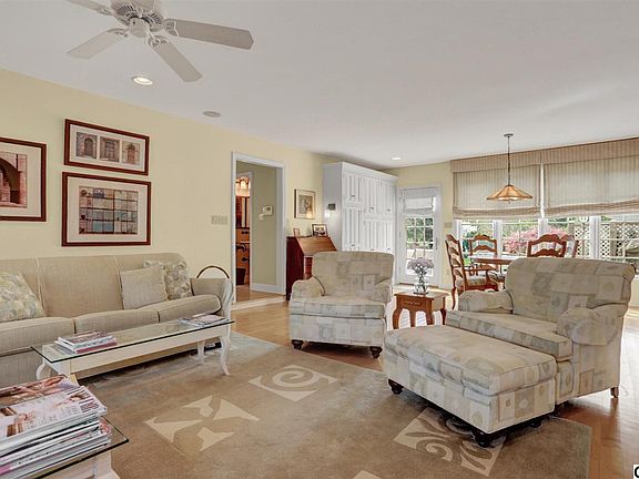 This magnificent three bedroom 1.5 bath home with hardwood flooring throughout first level is just what you have been looking for! Spacious kitchen has large island with seating plus solid surface countertops, wall of cabinets, dishwasher, double wall ovens and leads to beautiful sunroom with tile flooring and abundance of windows overlooking paver patio and immaculate landscaping. Formal dining room and lovely great room with gas fireplace, built-in entertainment center and bookcases. Built-in closet and drawers in master bedroom and window seats in additional bedrooms. Lower level family room has unique stretch of greenhouse type windows.