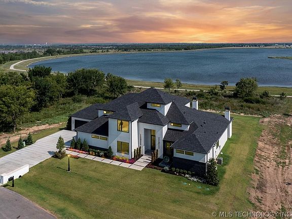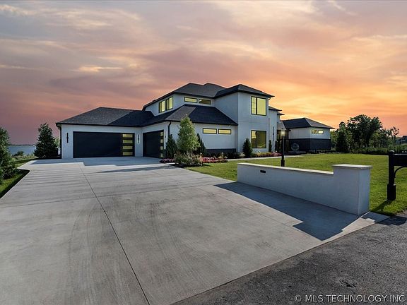 Discover unparalleled elegance in this flagship waterfront home on half-acre within the newest gated addition of The Coves at Stone Canyon. This 2024 Parade of Homes gem epitomizes luxury and exquisite design. You will be greeted by a stunning interior showcasing the finest finishes in cabinetry and flooring. The home boasts designer appliances, countertops and lighting, ensuring every detail exudes sophistication and quality. Two downstairs bedroom suites are perfect for ultimate comfort and privacy. Enjoy the versatility of a four-seasons room, ideal for year-round relaxation. Upstairs, find two additional bedroom suites, a state-of-the-art media room, and a spacious game room. This property is the pinnacle of breathtaking views and a serene lifestyle.