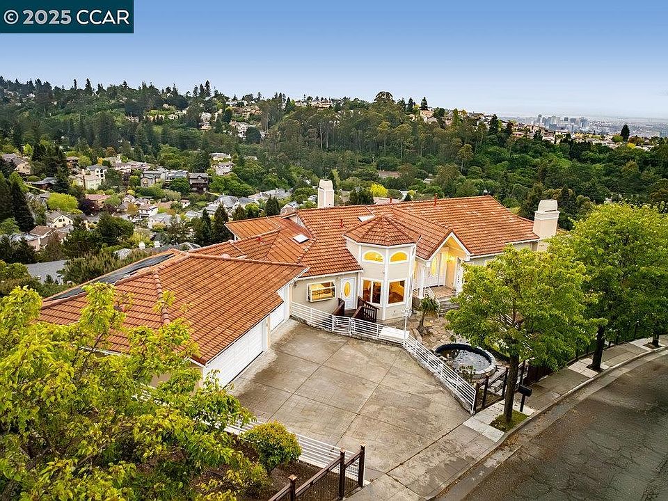 Whoever said “the best views of San Francisco are from Oakland” had this Glen Highlands home in mind. Enter through a foyer under an elevated ceiling. The distinctive living room sits nearby, with a spacious outside deck, fireplace and spectacular views of SF, Marin and the Bay. The open kitchen, with elite appliances, lies to the other side of the main level, leading to the spacious family room, with another fireplace and deck access. Choose from 2 rooms to dine. The octagonal breakfast nook easily seats 6-8 under an elevated ceiling. Alternatively, dine nearby in the formal dining room, which offers deck access and views. Work from home is easy in the oversized office near the foyer. One of the 6 bedrooms is on the main floor, under elevated ceilings, with SF views. Descend a spiral staircase to reach the other 5. The main bedroom is more than 300 sq ft, with access to a terrace and more SF views. The other bedrooms, also large, lie down a hall, each with views of SF or Upper Rockridge; 2 enjoy deck access. The lower level offers two venues for relaxation: a spacious rec room and a theater. The 3-car garage permits home access through a spacious mud/laundry room. Storage space abounds. One may access the 13 and 24 freeways quickly, leading to SF and the rest of the Bay Area.