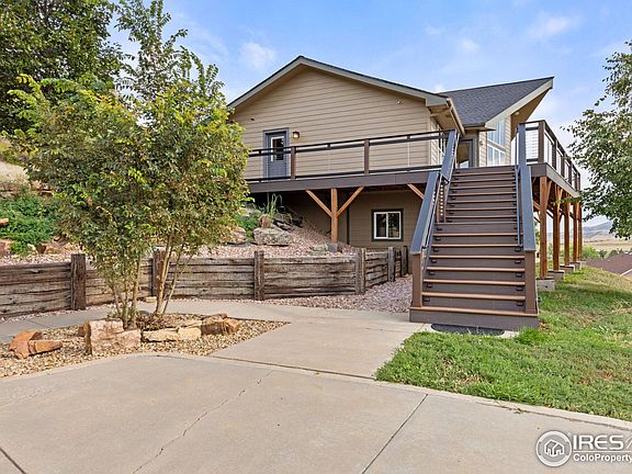 Your private mountain-side paradise awaits. 35 acres of peace and quiet stretching from the valley below to the top of the mountain behind. A move-in ready home that is warm, comfortable, and full of light. The main level is open with vaulted ceilings, central kitchen and living room, a wall of windows looking across the valley. Main floor primary suite and private office. Finished walk-out basement with contemporary design, spacious rec room, and offering 2 secondary bedrooms with shared full bathroom. Huge outdoor entertaining spaces with a wraparound composite deck or use the back concrete patio to host the largest of parties. Modern guest/in-law apartment above the detached garage features 2 bedrooms, bathroom, and kitchenette. Detached heated workshop currently used as a dream gym but offers many options for work space, storage, or more. This property has it all: beautiful land, move-in ready home, detached guest apartment, large outbuilding, and accessible to Berthoud, Longmont, Loveland. Schedule your showing today!
