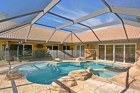 This beautiful 4 bedroom 3 1/2 bathroom home has been updated & expanded and is currently the largest home available in Lakeview Estates. This home features a split floorplan with two master suites each with many high end finishes including crown molding, bamboo flooring, separate tub and shower and large walk-in closets. Kitchen features custom cherry cabinets, double decorative edge granite, large center island and a breakfast area with views of the pool. The pool offers its own oasis with a cascading waterfall, sun deck, spa and screened patio. Other features include impact glass windows, crown molding throughout, security system with cameras and many more! Lakeview Estates is a safe, gated community with great amenities and schools.