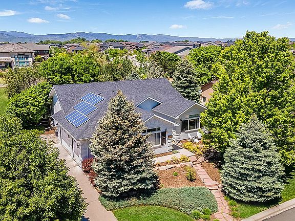 Coming soon! Custom ranch in excellent condition on a half acre estate lot in Fossil Lake Ranch. Walking distance to Zach, Kinard and Fossil, Twin Silo Park, easy access to I-25. Solar system keeps electric bills low. Huge 5 to 6 car garage. Main level living with open floor plan, two master bedrooms, and an office off the entry that can convert to a third bedroom. Finished basement has a large family room with wet bar, two bedrooms, a large laundry/craft room with walk-in closets, an exercise room that can convert to third bedroom, and two 3/4 baths. New roof, gutters, solar inverter, EV car charger and garage doors 2020. New A/C 2021.
