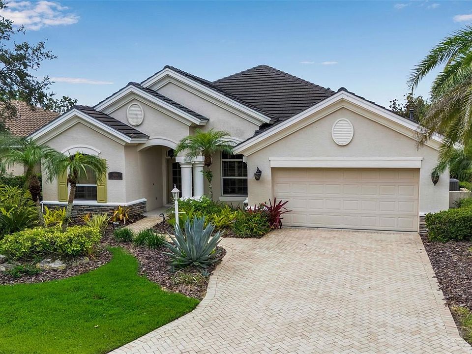 Experience the best of the Florida lifestyle in this elegant Lee Wetherington home located in the heart of Lakewood Ranch. With 4 bedrooms plus a den, this residence showcases timeless craftsmanship with hardwood and tile floors, plantation shutters, vaulted and tray ceilings, crown molding, artistic niches, and a split floor plan. The spacious owner's retreat includes dual vanities, marble counters, a walk-in linen closet, soaking tub, and separate shower. Guest accommodations feature an ensuite near the kitchen, a private walk-in closet bedroom, and a custom Murphy bed by Yoder that makes entertaining guests a breeze! The gourmet kitchen offers Corian counters, natural gas stainless steel appliances, pullout cabinets, and a wet bar, while a dedicated office with beautiful hardwood floors provides an ideal workspace. Walls of glass and an aquarium window open to the lanai, where you'll find a heated saltwater pool and spa—perfect for year-round entertaining. Recent updates provide peace of mind: new HVAC, 2023 hot water heater, 2020 roof, and hurricane shutters. Additional highlights include a 2-car garage with cabinetry and lush curb appeal. More than a home, this residence offers a gateway to Lakewood Ranch living, complete with world-class golf, wonderful amenities, and a true sense of community.