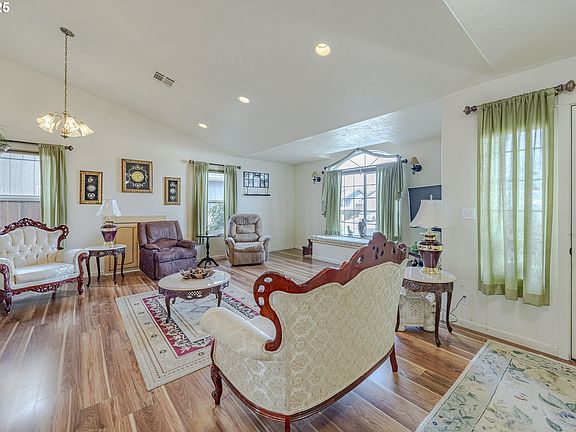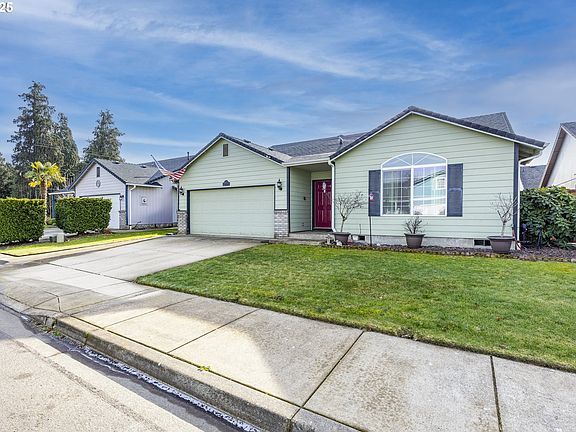 Charming and meticulously maintained, this Craftsman-style 3-bedroom, 2-bathroom home offers 1,580 sq. ft. of one-level living with thoughtful upgrades throughout. The vaulted ceilings in the living room, dining area, and kitchen create an open, airy feel, complemented by recessed lighting and new laminate flooring throughout. The kitchen features a fantastic layout with an island and ample built-in storage. Both full bathrooms have been tastefully remodeled. The primary suite boasts a walk-in closet, dual vanity, and dual shower heads, plus a private access door leading directly to the garage! The low-maintenance yard includes an in-ground sprinkler system, and the French doors lead you to the backyard featuring a stamped concrete patio extending to the side of the house, perfect for outdoor enjoyment. A newer roof, Hardie board siding, and a fully replaced fence add to the home’s durability and curb appeal. The oversized two-car garage provides plenty of storage. Located in a well-established neighborhood with excellent neighbors, this home has been well cared for and is move-in ready. Don’t miss this opportunity. schedule your showing today!