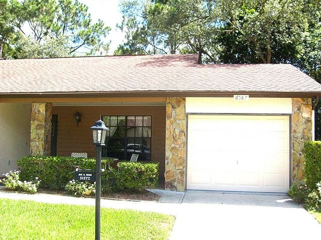 ADORABLE END UNIT VILLA FULLY FURNISHED with neutral colors. Two bedrooms, two bathrooms, one car garage, eat-in kitchen and vinyl enclosed lanai.You will love the spacious front porch! Very nice furnishings including dishes, pots and pans, linens, towels, etc.The bed in the master bedroom is a sleep number. The garage door has been replaced up to hurricane code. Sorry, no pets allowed in this village.Located in beautiful Timber Pines, a 55+ community with 4 golf courses,tennis courts, swimii...