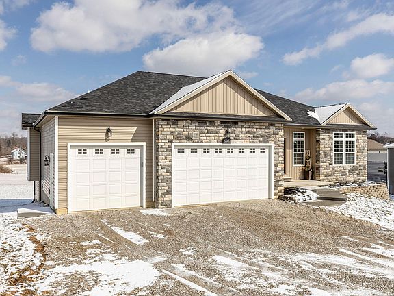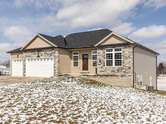 Wow- this is the home you've been waiting for! Newer construction (2018), with over 3500 square feet of easy living. This gorgeous single story home features four bedrooms and 3 full baths. The first level is open and spacious with a large living room, fire place, balcony and a kitchen perfect for entertaining. Speaking of space for entertaining, the full basement is beautifully finished and gives you an additional bedroom, full bath, and walks out to a patio. Situated on .67 acres with a 3 car garage, this one's a stunner! Easy access to 70 between Zanesville and Columbus