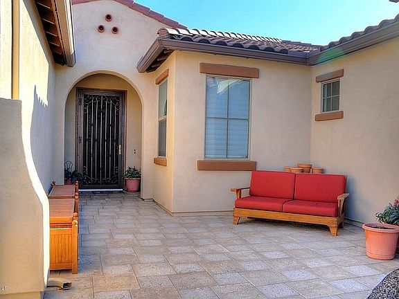 Shea,Loyola model,corner lot home in Seville's exclusive La Mirada GATED COMMUNITY,is a unique floor plan that offers you the ultimate in space!5 bedrooms, (5th currently no doors/used as a dining space)including large,private guest suite and formal dining area!Pretty,paved entrance with gate,private courtyard and Spanish scroll-textured bronze security door.Master bath has dual vanities,2 walk in closets,separate tub and walk in tile/glass block snail shower.Master bed has exit to covered patio.Sheer blinds in all bedrooms,black out drapes in master.Heat pump on water heater for instant hot water.Beautiful-no maintenance back yard with artificial turf,no 2 story homes around.Seville is a premier golf course community,come look!$4,000 to buyers at COE.