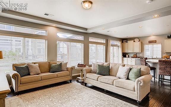 Immaculate and stunning home offered in Banning Lewis Ranch. Open and Bright home with over 1000 sq feet on the main level. Perfect for everyday living and entertaining! Kitchen boasts incredible counter space, large island, upgraded appliances, tons of windows, and a large pantry to keep organized! Flex space on the main can be a dining room, study, play room, piano room, or office space. Beautiful wood flooring throughout the main. Custom cubby as you walk in from the garage! See Supplemental Remarks. Upstairs offers 3 bedrooms, loft, and laundry room. Large master bedroom with attached bathroom and huge walk-in closet. Dual Vanity in the master bath with walk-in tile shower. Loft space expands the flexibility of living spaces! 2 additional bedrooms and stunning full bath. Air Conditioning, large patio with pergola, and turf backyard. HOA dues include internet and access to the pools, clubhouses, and workout areas. Tons of trails, parks, tennis courts and D-49 Schools. Don't miss this one!