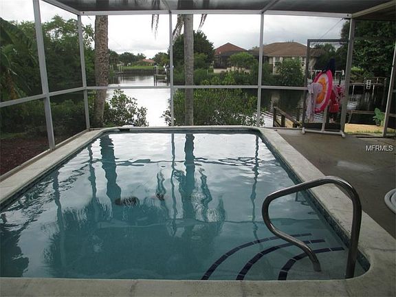 Make this house your home! 3 bedrooms, 2 bath, kitchen, Dining Room, Living Room, Large Florida Room, overlooking in ground pool SOLAR HEATED pool, on Gulf Access waterway with HUGE dock. The owner has painted new interior, new flooring, all new light fixtures, refrigerator, countertops, new pool pump, new pressure treated dock, electric to shed, Master bath has dressing area, sink area, bath area, home still needs some updating, but at this price, for this location and this Florida life, you will want to live here. Also, customer just had all the house lines replaced from meter to home on City Water. No bridges except 26' clearance in El Jobean. See visual tour of home and local attractions.