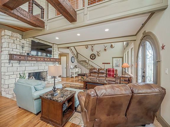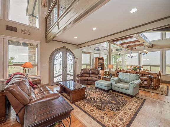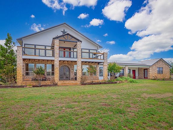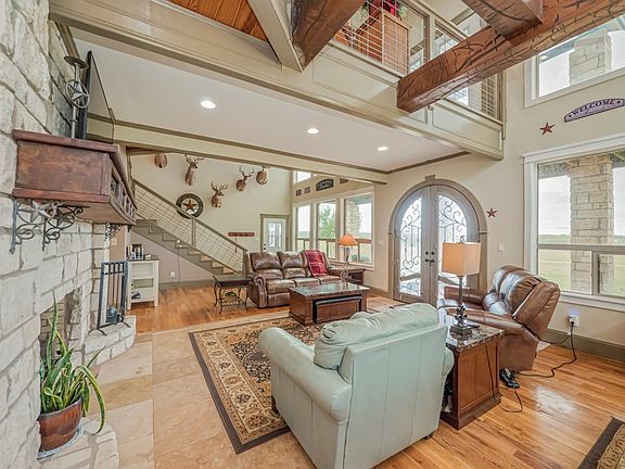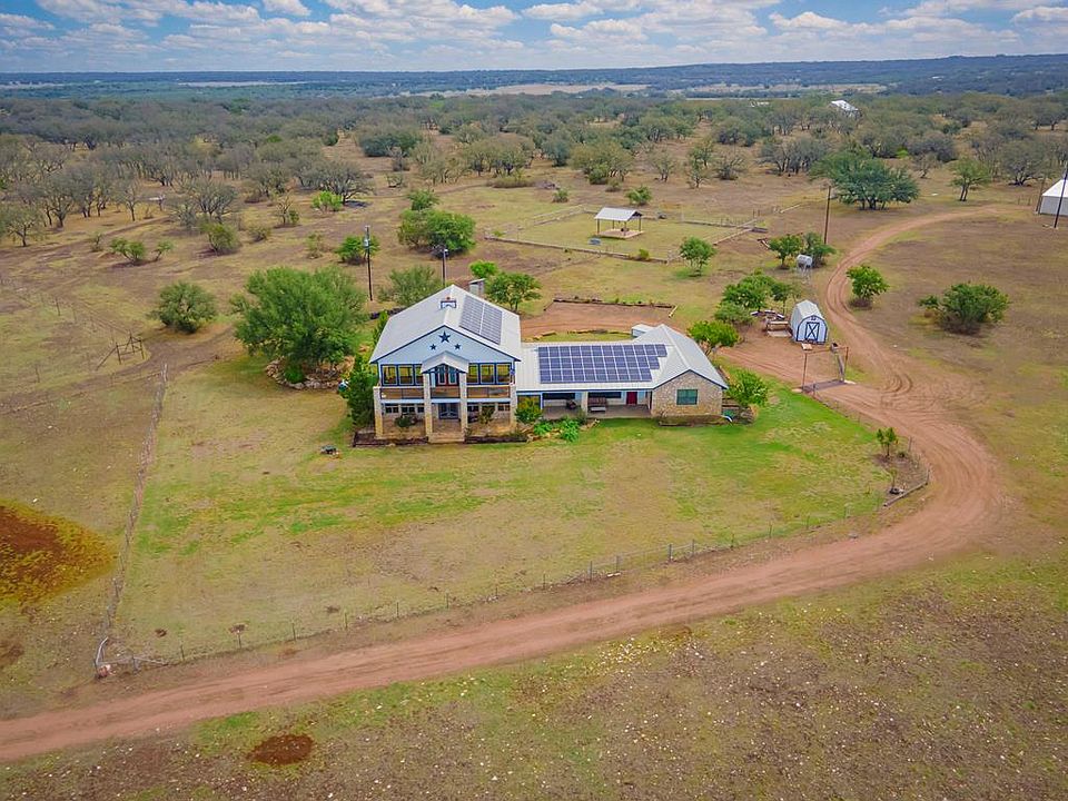Incredible 5 bedroom, 4.5 bath 2-story home on 26+/-acres! Lots of room for entertaining family & friends or could easily have rental possibilities, as attached guest house has an entertainment room with a full kitchen and private entrance. All appliances and some furnishings will convey. Attached 2-car carport. 45x60' wood frame, gravel floor barn & 12x20' storage shed. Property is completely fenced. Recently installed large amount of solar panels greatly reduce utilities. Lots of open fields with scattered mature oak trees. Raised garden area, Native grass and a 100 gpm water well. Whitetail