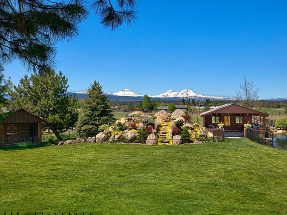 Stunning Cascade Mountain Views from home and property in the desired Tumalo area. This beautiful oasis has a one of a kind water feature with several waterfalls, ponds, stream, mature landscaping, tree stand and gazebo with bar/propane heat for outdoor entertaining. The property is 13.05 acres with 11 acres of TID water rights for pastures for livestock. The home features a covered porch, is 2850 sq ft with 3 bedrooms, 2.5 bathrooms, living room with views, dining area, office area, bonus room upstairs, basement game room/storage, attached 2 car garage with inside/outside dog kennel in a portion of the backyard. Outbuildings include shop with loft and equipment shed. The setting on this property is breathtaking and ready for any recreational lifestyle!