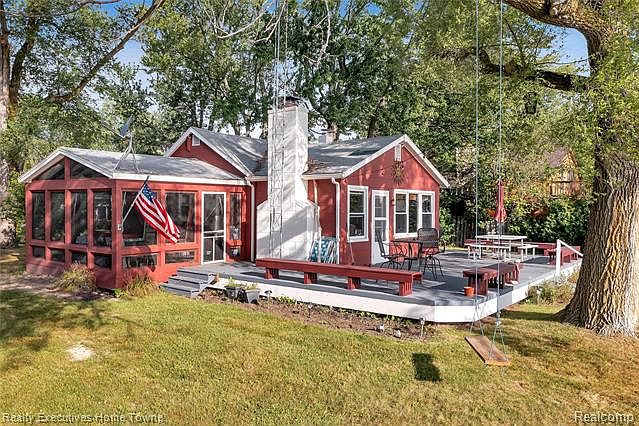 This is a beautiful 4.5 acre parcel, 125 ft frontage with stunning views of gorgeous Lake Huron. Located on this special site is two cottages, one offers kitchen, bath, great room also sleeping, large screened in porch, big deck across the front with show stopping sunrises. The newer cottage features kitchen, great room, bath, and bedroom on 2nd floor with open concept and plenty of views too. The pole barn is 32 x 80 with a double garage door, 2 single garage doors with a large upstairs with plenty of options. There is also a large paved area for any sport you might enjoy. The original cottage measures kitchen 10x7, living room 19x18, dining 10x9, bath 8x6, screened in porch is 15x13. The water connections is paid and sewer assessment is included in the taxes.