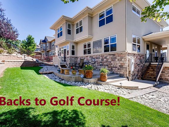 Elegant and pristine Saddle Rock North beauty backing to the golf course. Stunning golf course views from the upper level and quiet private tranquility, provided by the terraced back yard, on the main level that you can enjoy from the patio or the wrap around deck. This spacious, beautifully maintained home features formal and informal living and dining areas, a two sided gas fireplace, dividing the kitchen and family room, a main floor office or main floor bedroom, four more generous sized bedrooms, four lovely bathrooms, a perfect space for the family piano, an unfinished walkout basement and a 989 square foot garage for all of your cars, toys or boats.