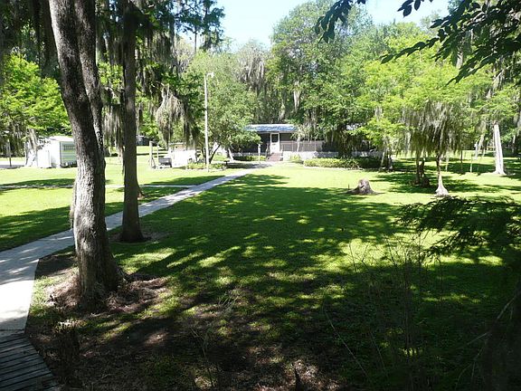 This 3 bedroom 2bath double wide has incredible views of the River and mature trees through out over 1.01 acre! Screened in wrap around porch adding 1800 sq ft of out door living area!!2 car carport.Concrete area with basketball goal,2 storage shed,300' artesian well and aerator,open kitchen,master bedroom walk in shower in master bath,Lots of extra windows and doors for light and access around porch area.Nice dock with boat lift under boat house. You can fish all day in shade of roof on dock!! Must see very cozy! Owner Financing available with 25% down !!!!!