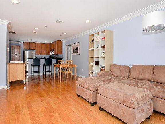 Spacious 2 Bedroom corner unit in Harrison Court. Features... stainless steel appliances, granite countertops, walk-in closet in the master bedroom and customized closets in both rooms, Hunter Douglas blinds and room for formal dining. Elevator building, gym and common courtyard. Parking is conveniently available for rent right across the street.