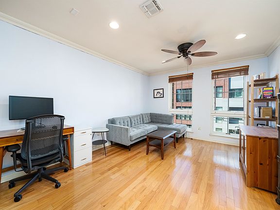 Perfect turn-key contemporary one bedroom in downtown Hoboken!! Nothing to do but move in and enjoy this beautifully maintained condo in lovely Harrison Court. Well appointed kitchen, 1 month old fridge, new wash/dry, new $4000 each Pella windows! Have a nice workout at the gym, enjoy a glass on the rooftop, and then cook up some BBQ in the outdoor courtyard. Super low HOA - only $226! Walking distance to PATH, bus, shopping, restaurants, parks, light rail.