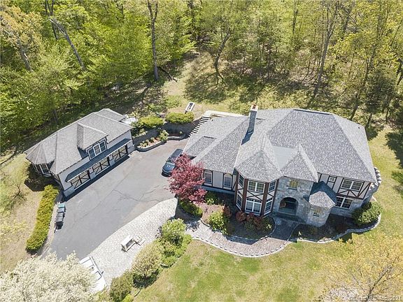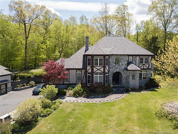One of a kind custom designed built home. A mix of old-world craftsmanship and modern construction is only the beginning of this exceptional Stone and Stucco Tudor sitting atop a hill on an oversized 1.51 acre lot with marvelously private yard, protected deeded land & left hand side & across the street is open space. Exquisite detailing throughout the versatile floor plan. A spacious 2 story foyer, arched solid oak doors, cased openings and trim accentuate the turned staircase; To the right, a formal half bathroom, through an Arched opening is a generous formal Living Room which opens to the full sized dining room, both with oak crown molding and solid oak floors; to your left is a natural light filled office overlooking the front yard ,straight on to the expansive gourmets kitchen walk in pantry, spacious breakfast area, large mudroom ,laundry room, and half bath all with porcelain tile. The adjoining Family room with large stone wood burning fireplace, walk in closet, with additional study/media room complete the first floor. Upper level boasts 3+bedrooms, each with ample closet space and accommodating baths. Generous Master Bedroom suite has large walk-in closet, full bathroom with whirlpool tub/shower, dual vanities, private toilet room, large linen closet and exterior stone balcony. Original Owner, Roof 2020, Furnace-AC 2005, Kitchen Appliances 2020.
