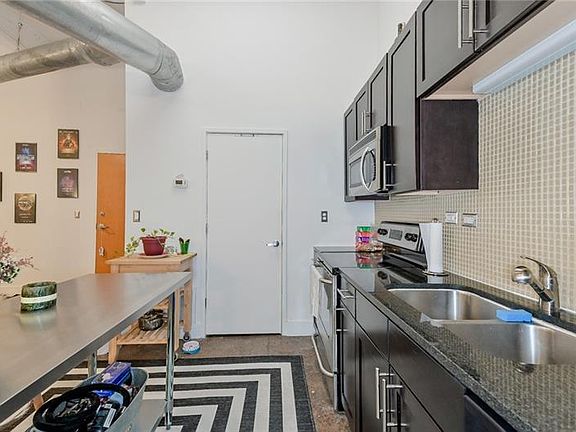 Live Like a King or Queen Along the Beltine in a Custom Factory Conversion. The 2 Bedroom 1 Bath Loft Features 18ft Ceilings, Skylights, and Large Windows. Spacious Open Floorplan, High Ceilings, Exposed Brick Walls and Large Balcony. Kitchen has Granite Counters and SS Appliances. Reserved Parking Space. Dog Run, On-Site Gym, Large Community Room.