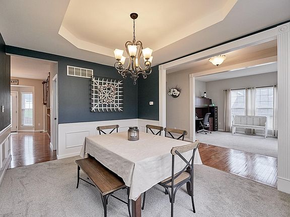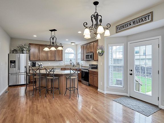 Beautiful MOVE-IN Ready 4 BR home with 3374 sq. ft. of living space in Stone Meadows. Exterior has a brick/stone front, gorgeous landscaping/lawn w/irrigation system (front & back) and a 3-car Garage. Open Floor plan, Living Room being used as an Office. All rooms freshly painted & newer carpet only 2 years old. Brand New Custom Blinds throughout (6 months old). Hardwood Floors in Foyer & Kitchen with 42 inch cabinets w/ sliders & pullouts. Planning Desk & Walk-In Pantry. Dining Room with custom touches. MFL Laundry. Great Room w/ WB fireplace and bay window. Large Master Bedroom Suite upstairs has a Walk-In Closet. Master Bath is generous in size and has double vanities, soaking tub & shower. 3 add'l BR & full Bath on upper level. Partially finished LL has a Family Room and Full Bathroom. Lots of Storage & Egress Window. Level fenced backyard. House is zoned and meticulous. Stone Meadows amenities incl: 2 swimming pools, clubhouse, walking trails, lakes, playground & sports fields.