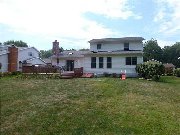 WELL MAINTAINED 2 STORY. BRIGHT KITCHEN HAS STAINLESS STEEL APPLIANCES AND NEW CERAMIC BACKSPLASH. SKYLITES IN EATING AREA. NEW CARPETING IN LR & FR. CERAMIC FOYER & KITCHEN FLOORING. NEW GAS FIREPLACE IN FR. ADDED CENTRAL AIR IN 2013. LOT BACKS UP TO WOODS. TWO TIERED DECK - OUTBUILDING. 1 YR HOME WARRANTY INCLUDED.
