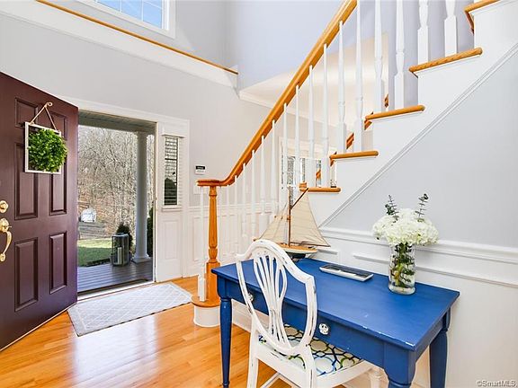 Fall in love at first sight! This grand colonial is situated on a beautiful, level acre in the Nichols section of Trumbull. Custom built in 2005 with over $150k of upgrades installed post purchase. Offers 4 bedrooms and 2.5 baths, open floor plan and plenty of natural light. The first floor features living room, dining room, family room which is open to the kitchen, mud room, laundry room and half bath. Family room features vaulted ceilings and a gas fireplace. The kitchen is adorned with stainless steel appliances, granite counters, hand-blown glass tile back splash and white cabinetry. The 2nd floor offers 4 bedrooms and 2 full baths. The master suite is a retreat with full bath, walk-in closet, and vaulted ceilings. The 3 additional bedrooms are spacious with great closet space. The walk out lower level is truly a surprise and offers an additional 875+ square feet of finished living space and includes a full kitchen with granite counters and wood cabinetry. The lower level could also be used as a guest or in law suite. No detail has been spared including an open floor plan, hardwood floors, elegant paneling, crown molding, custom blinds, and surround sound speakers for back and side yards. The living area extends outside to a private backyard featuring a Trex deck, irrigation system, and professionally landscaped property. A perfect home for cozy nights in front of the fire place or barbeques in the vast back yard. This sunny, inviting, impeccable home is a must see! Please remove shoes when showing. Property is .75 in Trumbull and .25 in Shelton. Shelton property taxes are $458/year. Can use Shelton Community Center as a perk! Shared driveway - Driveway has an easement agreement goes with the deed. Back house uses driveway only for ingress/egress. Maintenance is 50/50 (that's the condition of the easement). Guests can park all down the side of driveway - extra wide driveway for plenty of parking.