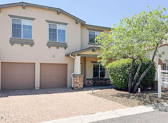 Huge PRICE DISCOUNT. This 4 bedroom, 3.5 bath 2,404 sq ft home has a private space for for everyone. Separate Upstairs and Downstairs family rooms. Downstairs Living Room too. Primary bedroom on the main floor has walk-in shower and closet. 2nd Ensuite bedroom upstairs, plus 2 additional large bedrooms. UNOBSTRUCTED Mountain Views! Upgrades include, Hickory wood floors, Quartz countertops and extensive indoor lighting w dimmer switches throughout. Post-tension slab with 2x6 construction and fire sprinklers. Hassle free, as HOA takes care of home exterior and front yard maintenance. HOA includes Insurance on the home too. Beautiful Mountain Gate w new outdoor park, pickleball and trails. Mins from Old Town & Sedona! Spectacular value at ONLY $178/ sq foot!