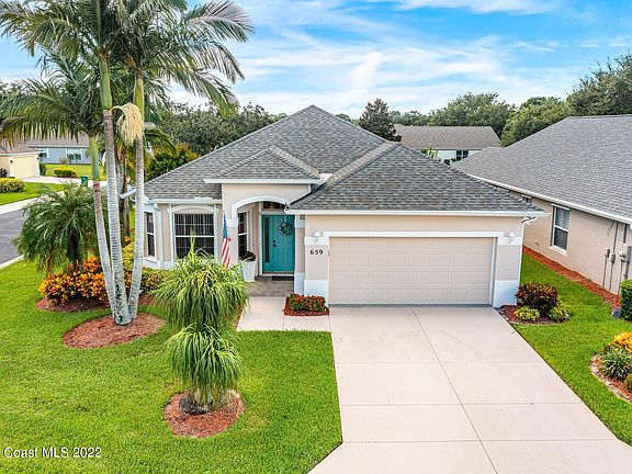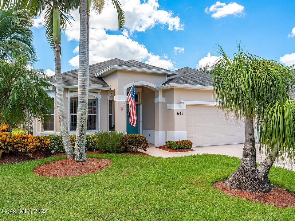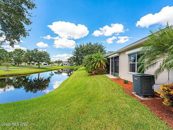 Pride of Ownership! Enjoy living the Florida Lifestyle in this 55+ community of Compass Pointe in West Melbourne! This lovely Dolphin Model was built by one of the best builders in the subdivision and features 3 bedrooms, 2 Bathrooms, plus 2 car garage w/ relaxing water views. Bright and airy throughout w/ 11ft. ceilings! The spacious kitchen offers plenty of storage and counter space w/ Corian Countertops plus built-in hot plate, while the primary bathroom offers double sinks and a large walk-in shower. Sip your morning coffee or tea on the tiled screened lanai overlooking the water. New Roof in 2020, W/H, carpet, refrigerator & dishwasher in 2021, and A/C in 2016. ELECTRIC ROLL DOWN SHUTTERS on porch, accordion on the others. Conveniently located to shopping, restaurants, beaches & more. more.