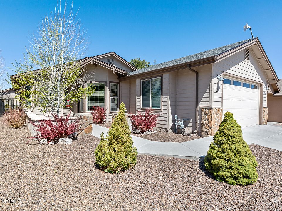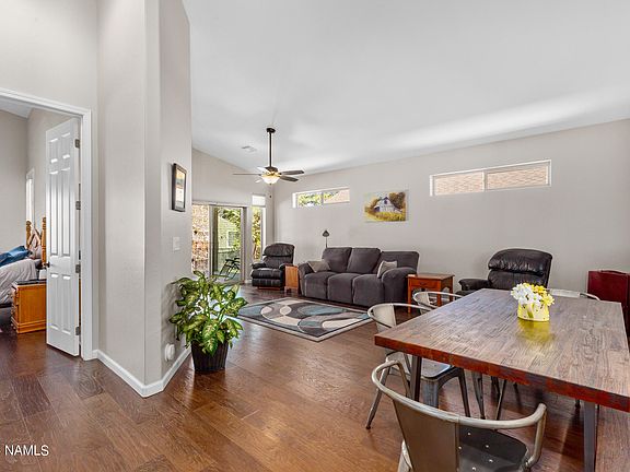 This stunning Patio Home for sale at Elephant Rocks golf course offers a luxurious retreat with breathtaking views of the Bill Williams Mountain. Boasting 1,475 square feet of living space, this two-bedroom, 2.5-bathroom home features vaulted ceilings, wood floors, and ceramic tile in the bathrooms. Cozy up next to the fireplace in the spacious living room or enjoy the serene outdoors on the cove deck overlooking the fenced backyard with an extra storage shed. This property includes window treatments throughout, all appliances (including a washer and dryer), and a two-car garage. The beautifully landscaped front and back yards create a peaceful oasis in this amazing neighborhood. Conveniently located within walking distance to the golf course and just 2 miles from downtown Williams, More. this home offers the perfect opportunity for full-time residency, a summer getaway, or even an Airbnb investment. Don't miss out on the chance to own a piece of paradise in this desirable location!
