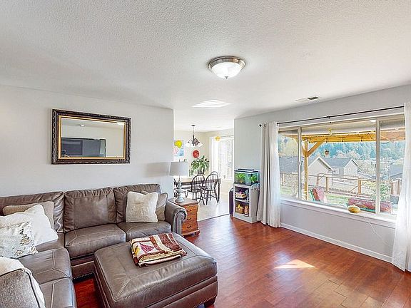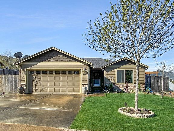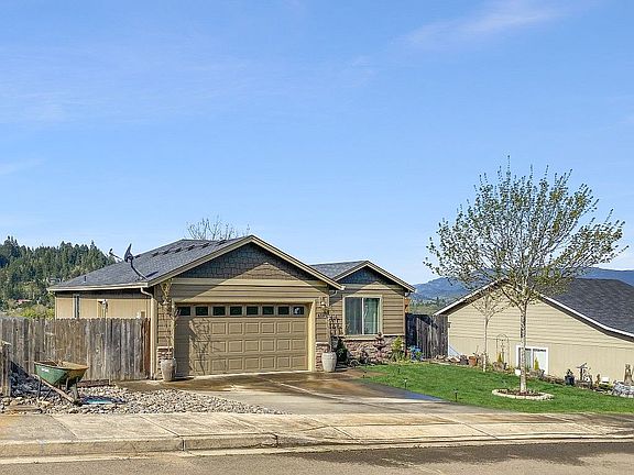 A move-in ready, well maintained 2 bedroom home offers a sun-filled flowing floor plan and a great Sutherlin OR location! Beautiful wood laminate flooring highlights the spacious living room where relaxation is the name of the game. A large picture window illuminates this space with natural light. An abundance of white cabinetry, glistening granite countertops, stainless steel appliances, easy care laminate flooring, upgraded light fixtures and faucets create a gourmet kitchen sure to impress! The large dining area opens to a covered patio overlooking a fully landscaped yard with views of the mountains. Listen to the sounds of the relaxing water feature, grow some veggies or raise your own chickens in this beautiful backyard oasis! The primary suite offers two closets and direct access to the large full bath. The second bedroom is at the front of the home, plus there is a great nook that could be a home office or study area. An attached 2 car garage with potential for RV parking. Appreciate this convenient Forest Heights location near all amenities. You will be proud to call this one HOME. Make your appointment today!