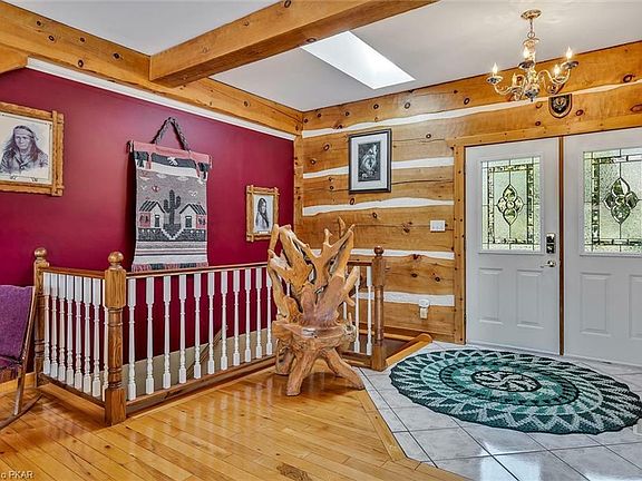 Ready to escape the Hustle & Bustle of City Life?? Looking for Privacy?? Its all right here and more!! Incredible 62+acre parcel abutting the Village making this location a great investment plus convenient to all amenities!! Brimming with pride of ownership this stunning Log home offers natural light, warmth and charm such a homey feel!! Great open space with lots of room for entertaining family or guests! Fabulous Kitchen with oodles of cabinets, island and dining area, all overlook living room, walk-out to inground pool!! 3+1 bedrooms, Primary with ensuite, main 4 pc bath, lower 4 pc bath, huge rec rm with pellet stove, office, m/floor mudrm/laundry with walk-through from triple garage into home!! BONUS HUGE detached garage/shop!! Beautiful gardens, lovely stand of trees with approx. 40 acres of farmland offering lots of potential for hobby farming. Must see!!