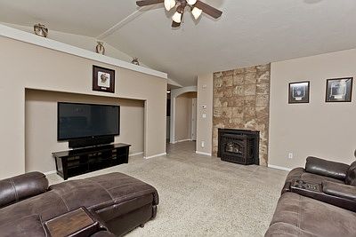 Spacious ranch style home tucked in a meticulously maintained neighborhood in the NE area. With over 1800 SF this home features a huge kitchen with a large living and dining area. The dining area flows to the double doors that will take you to your very private back yard that has two garden areas, a shed and huge slab for RV parking. The master suite is large enough to have a king size bed and an office. The two guest rooms are more than adequate for a large bedroom set. The living room has a pellet stove that is on a thermostat to reduce those utility costs. So much to love about this home!