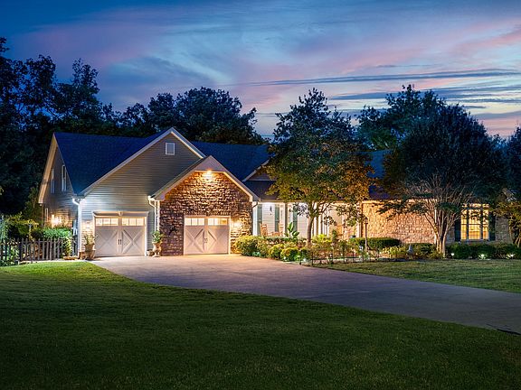 TOTALLY CUSTOM & EXTREMELY RARE RANCH style home on nearly 5 ACRES nestled at the end of a quiet cul de sac with no HOA. No thru traffic. The expansive main level offers 3,500 sq/ft, w/4 bdrms, lg den & 1/2 bath off the kitchen, formal dining rm, sunroom, & an incredible oversized tiled FLORIDA ROOM w/full heating & cooling & 360° views of the forest. Hardwood oak floors in living, dining, & bdrms. Massive tiled kitchen has a walk-in pantry, abundant cabinets, lg island with a high-end gas stove/range, storage, & cabinets. Spacious living rm w/vaulted ceilings. Primary suite features vaulted ceiling w/beams, dual walk-in closets, oversized tub, & dbl vanities. 2 guest bdrms share a Jack & Jill bath with oversized tub. Upstairs includes a bonus rm, full bath, 2 bdrms, use one as an office, the other a bdrm, 3 lg closets & access to walk-in attic. Lg laundry rm on the main level w/washer & dryer, built-in wash sink & lots of storage. Windows & frames custom made. GARAGE SPACE FOR 5 VEHICLES: Front driveway leads to 2 upstairs bays w/new garage motors, 2nd driveway leads to 3 oversized bsmnt bays in back w/tall doors, high ceilings, & storage. Perfect for large trucks, boats, RVs, or workshop use. Walk-in crawlspace plus multiple storage areas throughout the home. Tankless water heater installed in 2024. Handicap accessible entry from garage w/no steps. $45,000 used to replace roof, gutters, & soffit in 2024, new fence in 2024. A koi pond, rose bushes, organic garden, & over 4 acres of private backyard along with a dog run off the bsmt of the home. City sewer connection, not septic like most homes in the neighborhood. Prestigious neighborhood near Dunbar Cave & Swan Lake Golf Course. Property has been immaculately maintained inside & out. RECENT PRE MARKET HOME INSPECTION ON FILE which means no surprises! Make an offer w/confidence knowing that all info. is on th table!