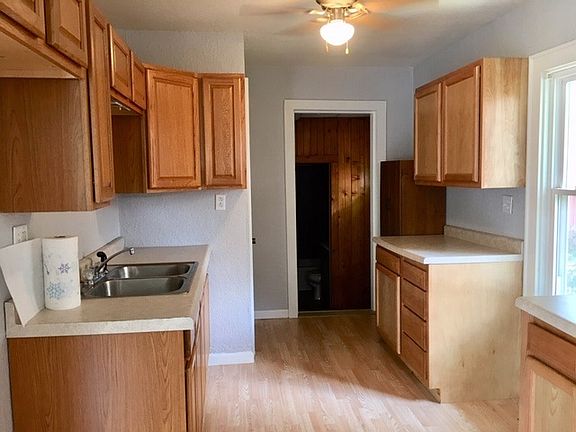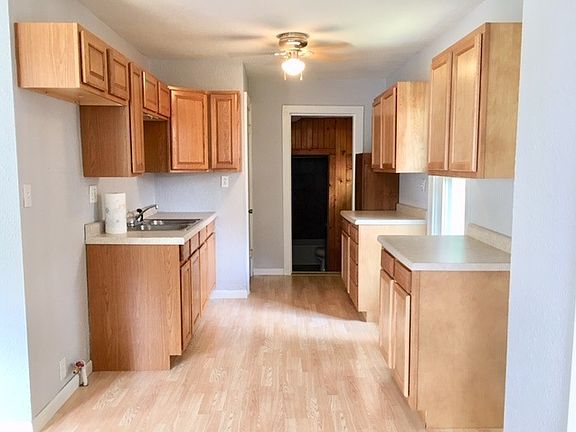 Cute home at an affordable price. Open kitchen and living room. Large front closet. Two bedrooms. Remodeled bathroom. Partial basement. Laundry hook ups are in the basement. Freshly painted. Replacement windows. Ceiling fans. Updated furnace and air conditioner. Concrete parking slab on side of house. Move in condition. A great find for this price!