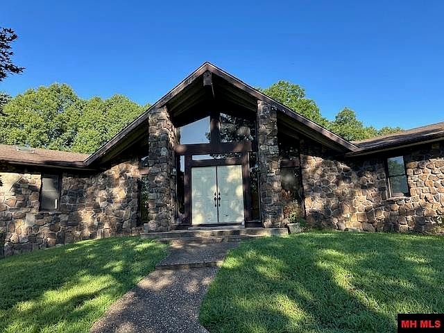 This architectural masterpeice nestled in the serene landscape of Harrison AR is a must-see. You're immediately enveloped in an atmosphere of rustic elegance the moment you step into the grand entrance. The heart of this home features a magnificent stone fireplace, serving as a dramatic focal point inviting you in for a cozy evening with loved ones. A true masterclass in design, this home boasts breathtaking cathedral wood ceilings and beams crafted from Douglas fir sourced from California. The impressive craftsmanship continues throughout the house-- with hardwood floors and a spacious kitchen with abundant cabinet space. Entertainment possibilities abound with a versatile game room in the basement, and a spacious deck ideal for outdoor entertaining or a peaceful morning cup of coffee. This house is the perfect blend of peaceful living and proximity to shopping and restaurants. Call for a showing today! Please refer to supplement sheet for more information on the house's origin.