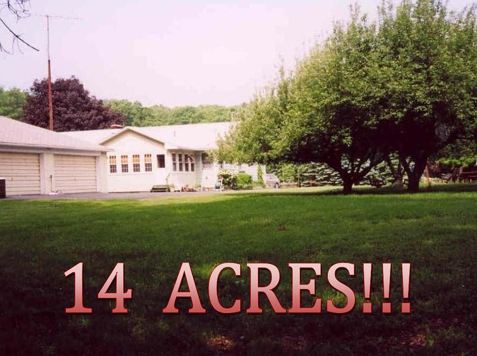 11+ Acres w/ Ranch House and 4 Car Garage/workshop, a stone's throw away from motor boating Lake Wallenpaupack! Landscaped and wooded, with garden and fruit trees, gazebo, and trails for your 4 wheelers! 3 bdrms, 2 bths, Florida room, fireplace, and unfinished lower level to grow into. Space inside and out, for living life to the fullest! 4 wheeler, tractor, and more included! Hurry! 2 hours from NYC