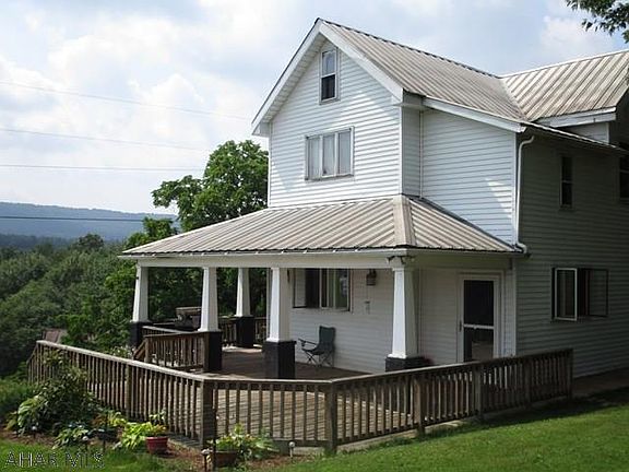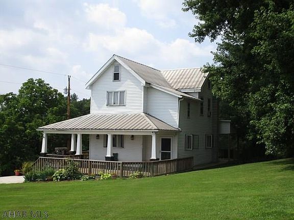 Charming farmhouse on nearly 9 acres in Bedford County, Pennsylvania. Stunning view from the wrap-around porch overlooking the countryside. This home offers the privacy of a country home, while still being just a 10 minute drive to the Breezewood interchange. Property includes 3 car garage, above ground pool, and enough land for your own personal hunting grounds! Spacious kitchen with center island and original cabinetry! Ask to see this property today!