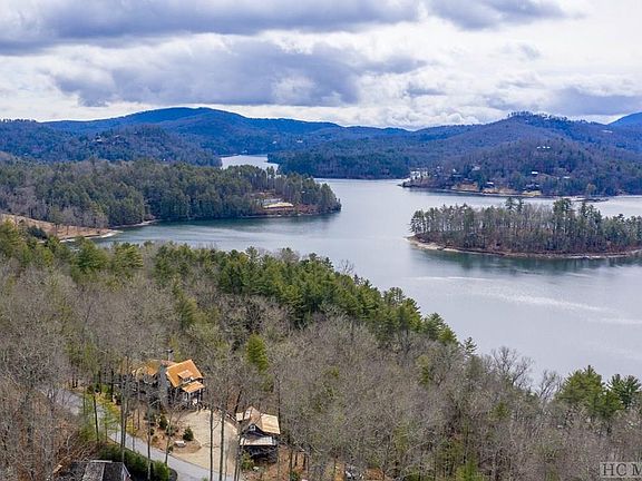 Where do eagles soar? Right before your eyes as you enjoy your mesmerizing views of Lake Glenville and the mountains beyond from your covered decks. Designed by Travis Mileti, this recently completed home includes a designated slip at the community dock. Quality appointments include reclaimed wood floors, painted shiplap walls, and a gourmet kitchen with Sub-Zero, Wolf, and Bosch appliances plus Silestone counters and Kohler sinks and faucets. The heated tile floor in the master bath keeps the room cozy as you enjoy the soaking tub. The lower level family room offers a new wet bar and wine storage. Additional upgrades from the current owners include a large, newly constructed double carport with attached storage shed and attic, custom designed landscaping and hardscaping, Ralph Lauren chandelier in the dining area, Wolf warming drawer in the kitchen, ADT security system, and more! The fenced yard is an added bonus for pet lovers. Seller is NC licensed broker.8 bedroom septic system in place ; house on lot 18 will share. Tax amount is an estimate based on current property tax rate.