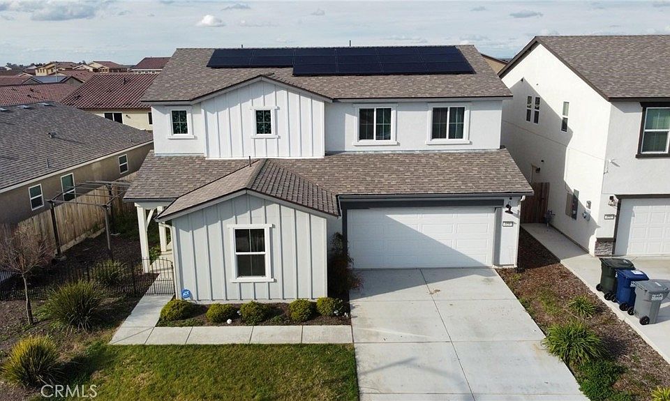 Welcome to this multi-generational home in North Merced. 5 bedrooms and 3 ½ bathrooms. This two-story home offers an in-law suite with 1 bedroom, 1 bathroom, kitchenette/dining/living area, and a separate entrance on the main floor. Upstairs features 4 bedrooms, 2 bathrooms, laundry room, and a large loft which is perfect for a second living room, playroom, or an office. The spacious kitchen comes with a large island, walk-in pantry, gas stove, stainless steel appliances, and lots of cabinets space. The house comes with wired security system, solar, and water softener. The backyard features a large shed great for tools/gardening supplies and a pergola perfect for entertaining and enjoying the outdoors. This home is less than 5 miles from UC Merced, and within minutes to Merced College, the hospital, restaurants, and shopping center. Home is ready move in and is priced to sell.
