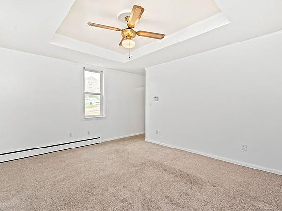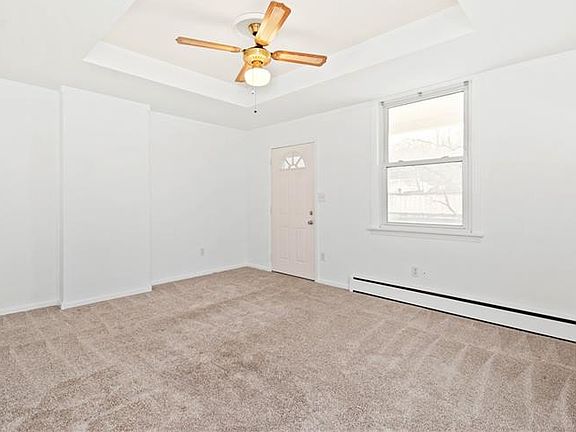 Welcome to this lovely well maintained farm-like townhome with an inviting covered front porch. All rooms boast plenty of space including a well kept Kitchen with plenty of cabinets & built-in corner cabinet. Living Room was remodeled in 2005 with tray ceiling, new walls, and wiring. New carpet installed in 2015. Carpeted steps lead up to the spacious bedrooms with ample closet space. Main bathroom is great size with double linen closets. Off the kitchen is the updated foyer with a wide closet perfect for coats & storage. Foyer leads to flat back yard & 1 car detached heated garage w/nice attic for additional storage, paved driveway & patio! House has been resided & insulated plus owner added shutters, vents, gutters & downspouts in 2005. Great location within miles of local shopping malls, restaurant, parks & recreation.