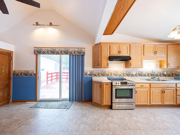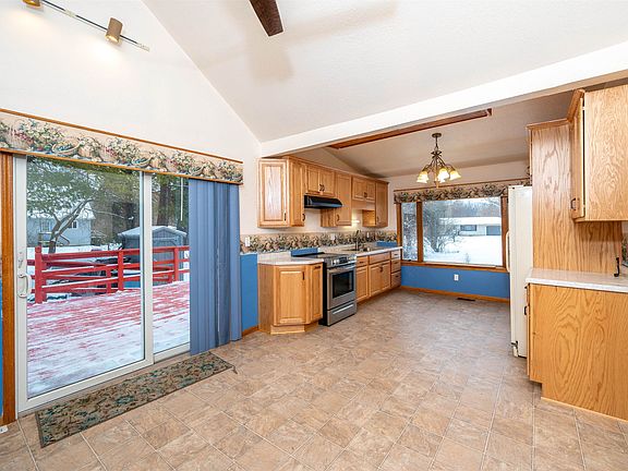 On a private country setting so close to town, thus 1-1/2 story, 2415 sq. ft., 4 bedroom and 2 bath home is located on a large and inviting 1.55 acre lot. The first floor is handicap accessible. The recently updated kitchen includes plenty of space for your eat in kitchen, pantry and handsome oak dove tail wood cabinets with soft close drawers. The great room has large windows, a vaulted ceiling, a wood stove and opens to a dining room making for a center piece for the home and family. The second story family room has a balcony overlooking the great room providing a flexible space for entertaining or an office. The four bedrooms are generously sized with three on the main floor and one on the second which has a beautiful wood ceiling. An external wood stove and LP gas furnace provide options for heating. A separate three stall garage provides ample room for vehicles, toys, hobbies and a shop. The structures on the property have a LOMA. Above ground fuel tank will be removed prior to close.